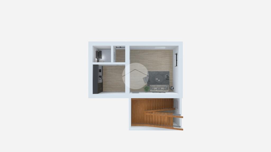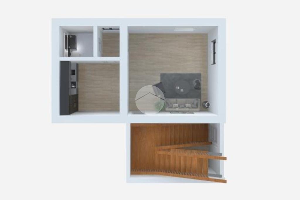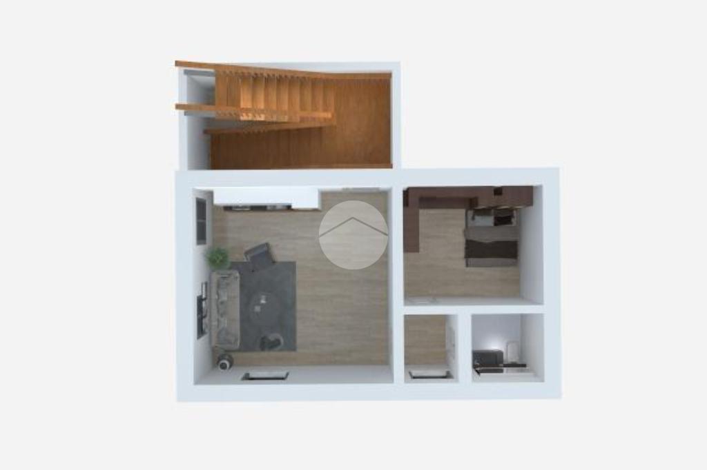 Una scala interna conduce al secondo piano, dove troviamo un salotto con angolo cottura, bagno e un ulteriore locale, attualmente adibito a camera da letto, creando uno spazio versatile e funzionale.